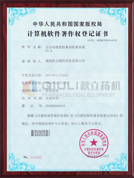 計(jì)算機(jī)軟件著作權(quán)證登記證書(shū)-凝膠膏劑配夜系統(tǒng)